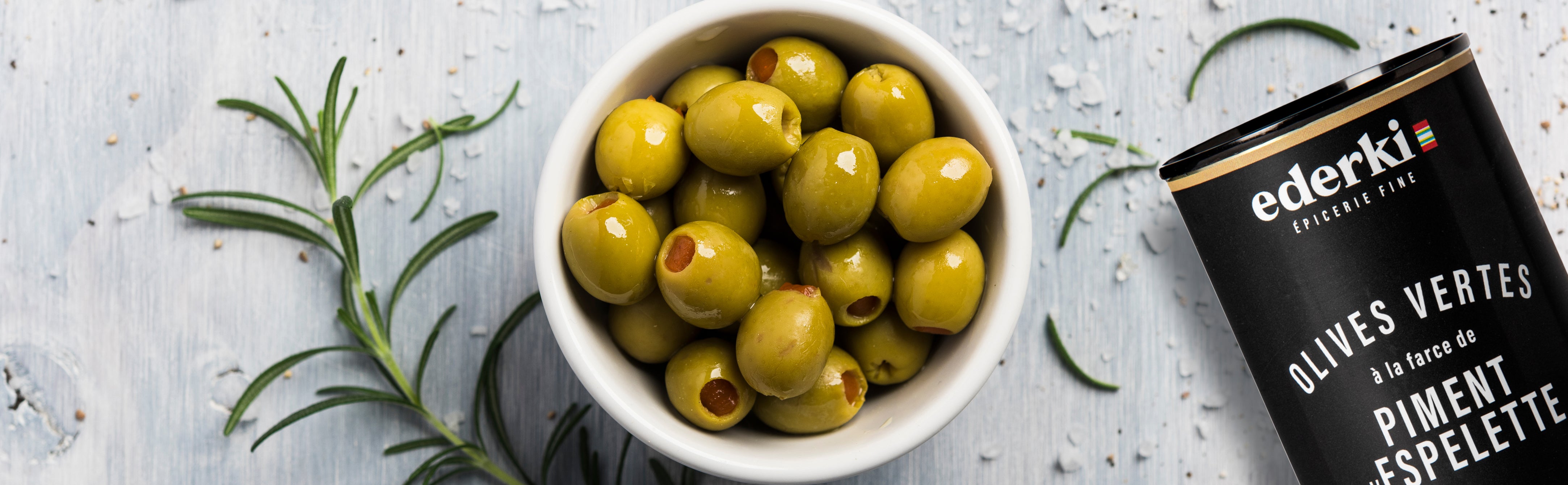 Olives vertes farcies au piment d'Espelette